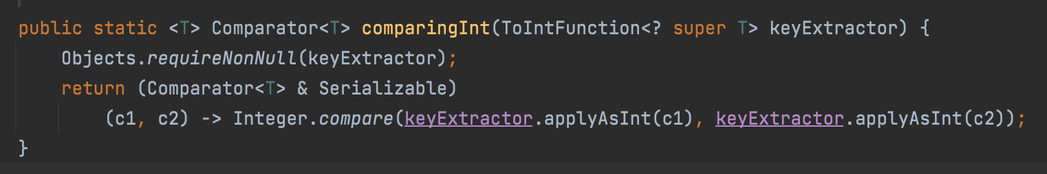 Comparator의 정적 메소드인 comparingInt를 이용해, ToIntFunction 타입인 String의 length 메소드를 보낼 수 있어서다.